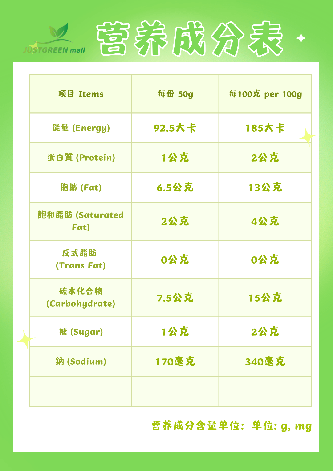 配料成分 非基因改造組織狀大豆蛋白、水、大豆沙拉油、蛋白粉、樹薯澱粉、糖、醤油、碘鹽、味精、五香粉(小茴、肉桂、大茴香、丁香、花椒)、酵母精粉、黑胡椒、白胡椒、素食調味料 5'-次黃嘌呤核苷磷酸二鈉、5'-鳥嘌呤核苷磷酸二鈉、甜味劑 (甘草酸銨)、檸檬酸鈉、糖)、食用紅色四十號鋁麗基