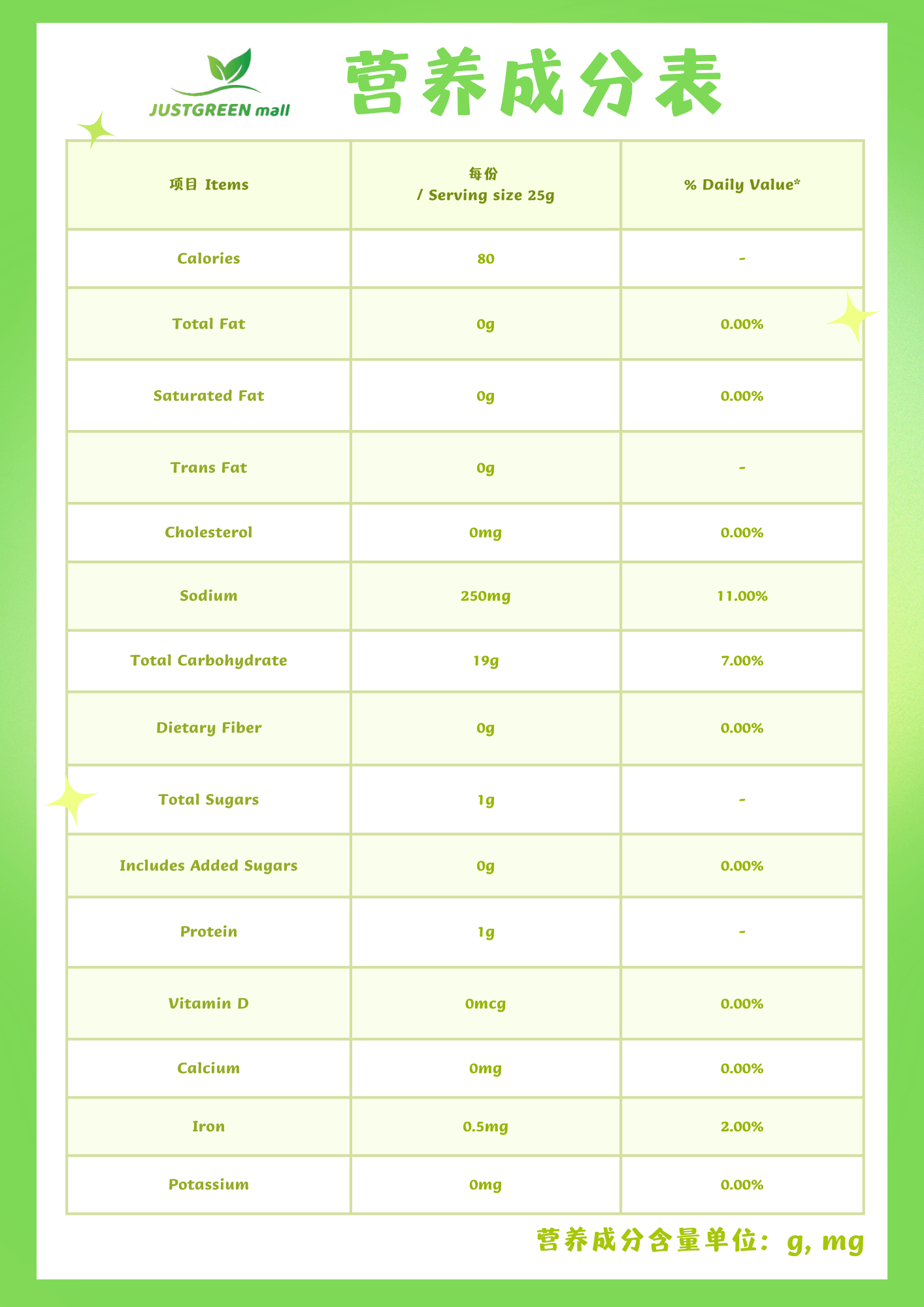 配料成分 小麥粉、澱粉、鹽、糖、辣椒粉、白胡椒、黑胡椒、香料、素食調味料和發酵粉。