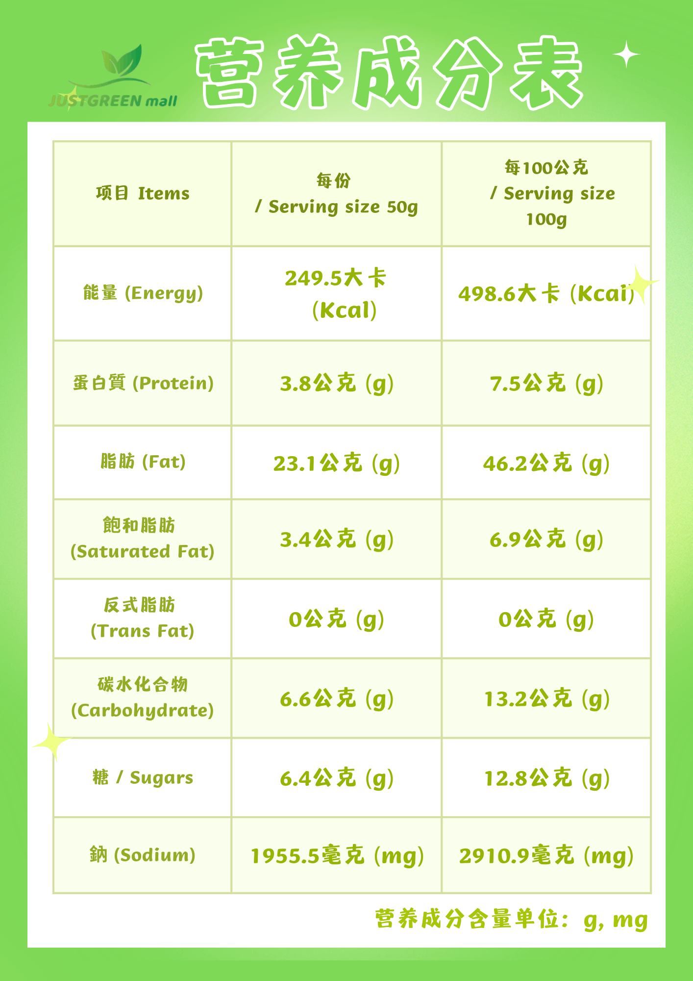 過敏原提示 本產品含有大豆、小麥、芝麻、花生與椰子成分。