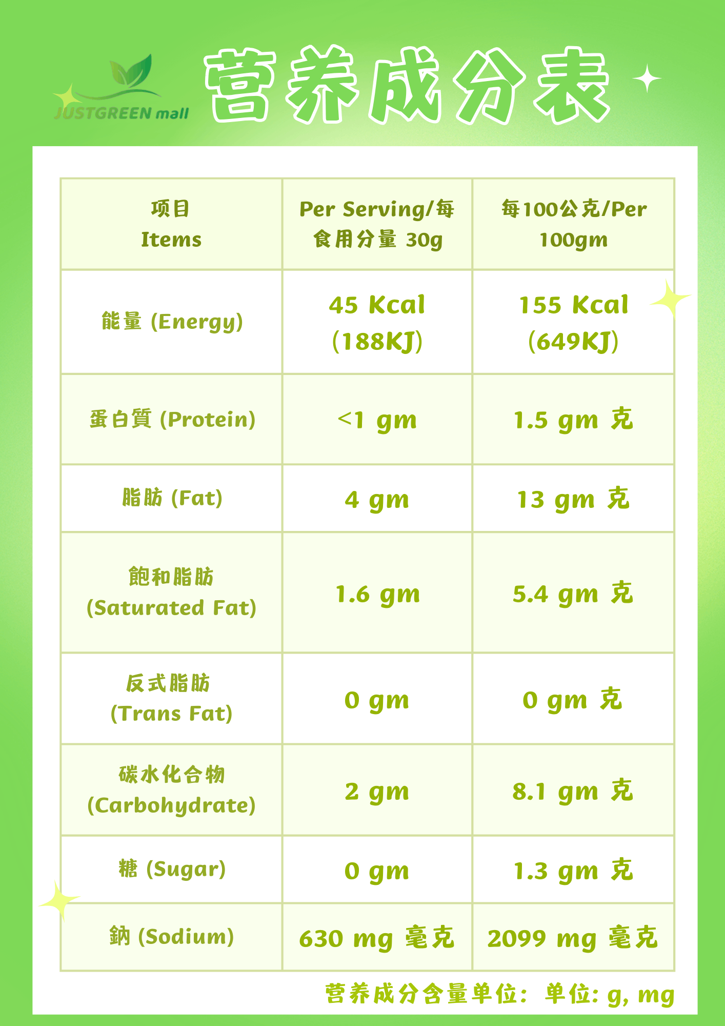 配料成分 棕欐油、辣椒、香茅、薑花(叻沙花)、南薑、 楓柑葉、酸柑汁、鹽、