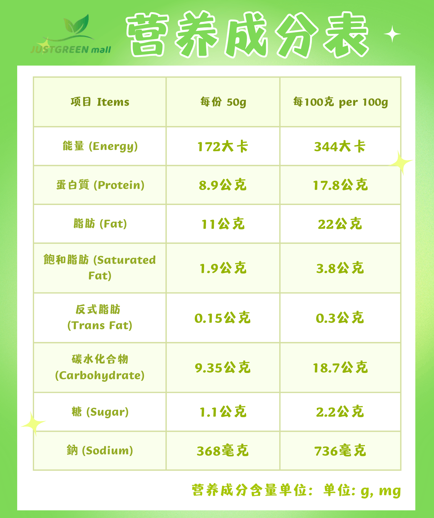 配料成分 水、組織性大豆蛋白(非基因改造)、大豆油(基因改造)、分離大豆蛋白(非基因改造)、粘稠劑(醋酸澱粉)、小麥蛋白、酵母抽出物、調味劑(味素、胺基乙酸、5’-次黃嘌呤核苷磷酸二鈉、5'-鳥嘌呤核苷磷酸二鈉)、鹽、玉桂粉八角粉、花椒粉、白胡椒粉、 小茴香粉、地瓜粉、甜味劑(甘草素)、香料