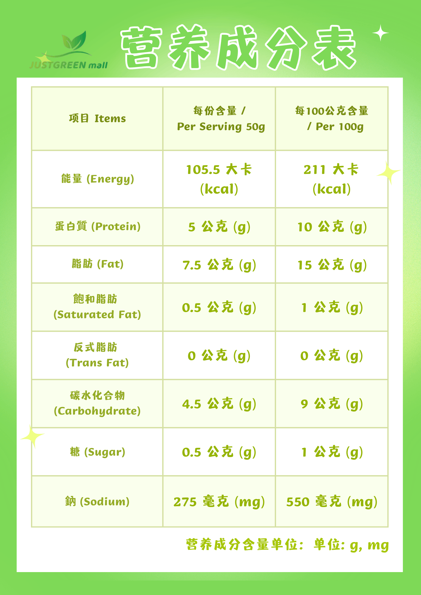 配料成分 水、芥花油、非基因改造大豆蛋白、小麥澱粉、小麥蛋白、小麥纖維、香菇、蛋白粉、糖、醬油、甜味劑(甘草萃)、鹽、調味劑(5'-鳥嘌呤核苷酸二鈉、5‘-次黃嘌呤核苷磷酸二鈉、胺基乙酸、DL-胺基丙酸、L-麩酸鈉、琥珀酸二鈉、關華豆膠、營養添加劑(DL-蛋氨酸)、麥芽糊精、小茴、大茴、丁香、花椒、甘草、當歸粉、香料、粘稠劑(甲基纖維素)、白胡椒粉