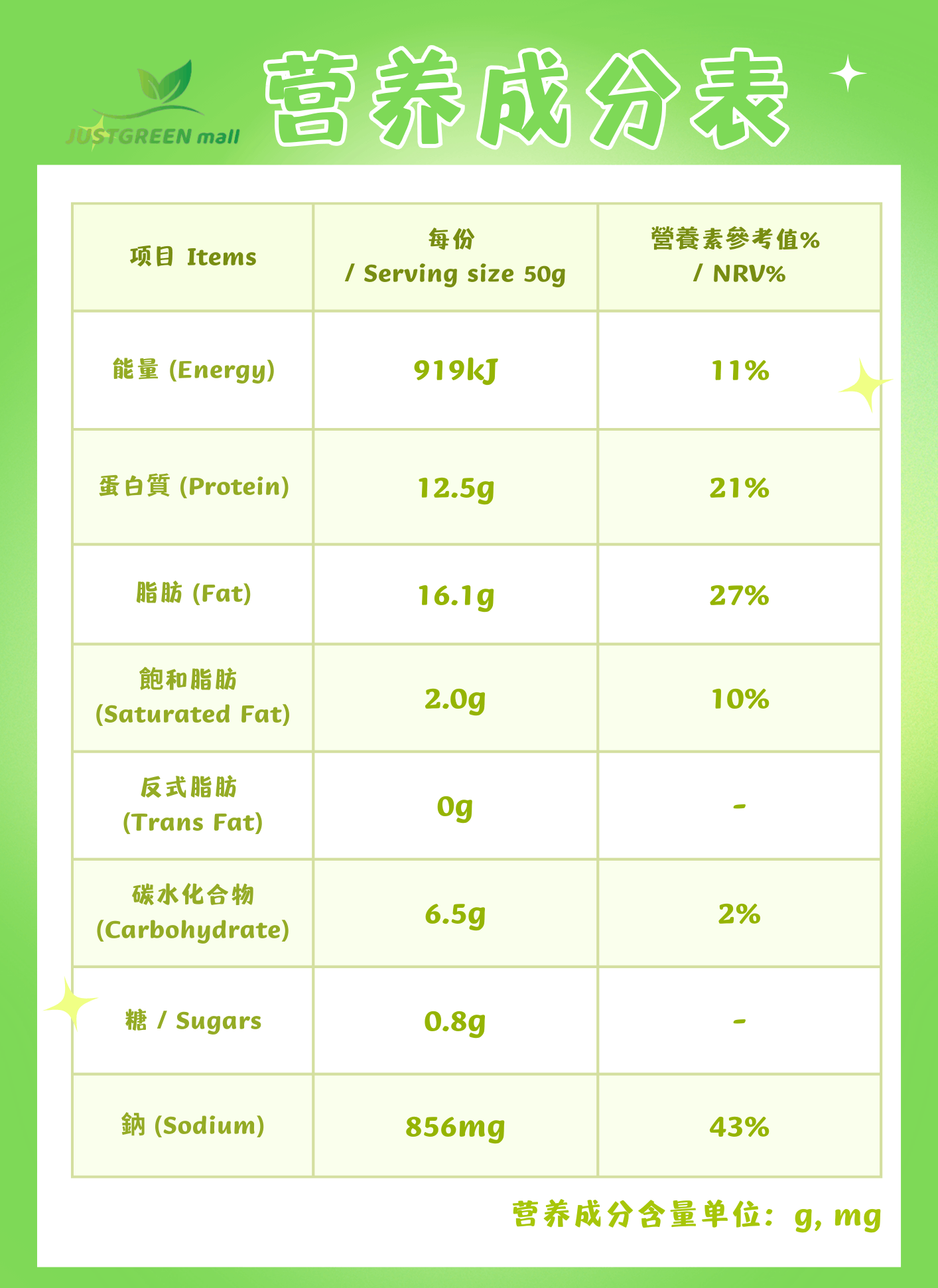 配料成分 水、大豆分离蛋白、香菇、淀粉、植物油、酿造酱油(含焦糖色)、食用盐、白砂糖、香辛料
