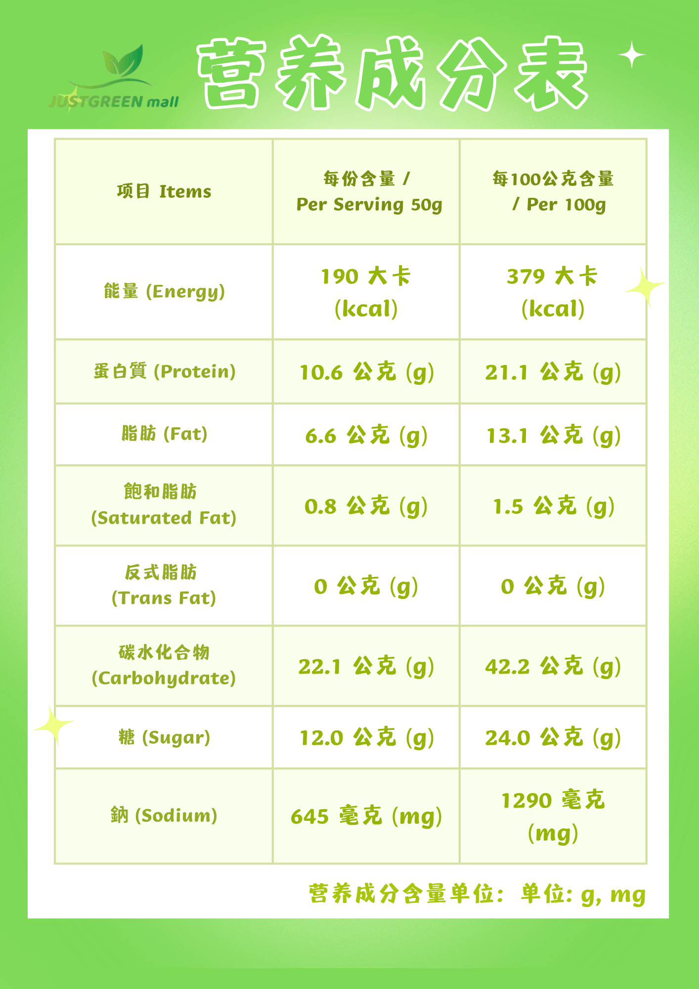 配料成分 大豆纖維、糖、蛋白粉、芥花油、醬油、鹽、黑胡椒粉、己二稀酸(防腐劑)千分之2以下